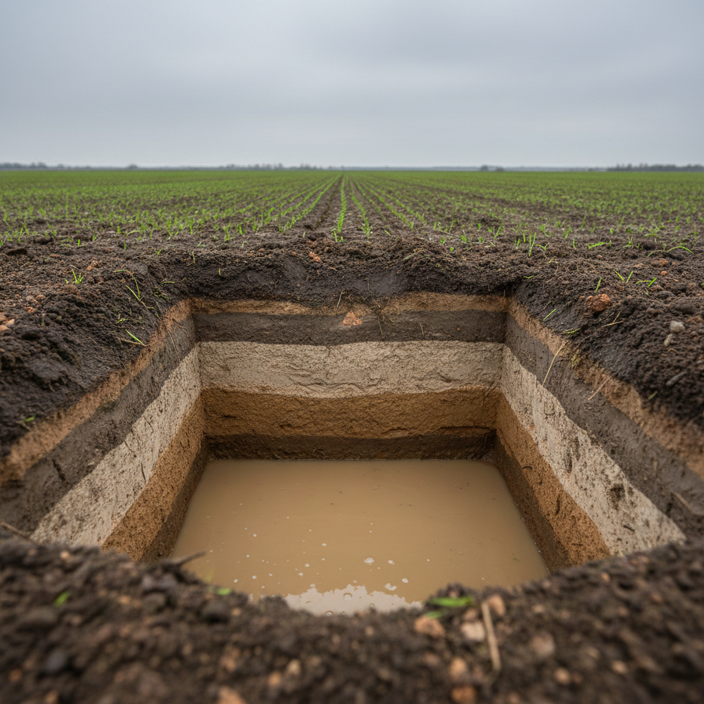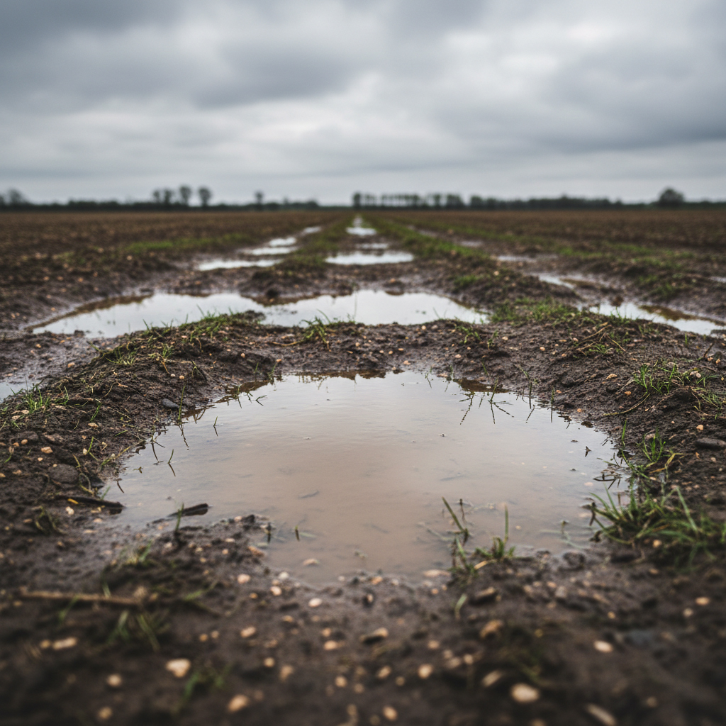 • gleba zbita, gliniasta, „plastelinowa” → sygnał ostrzegawczy